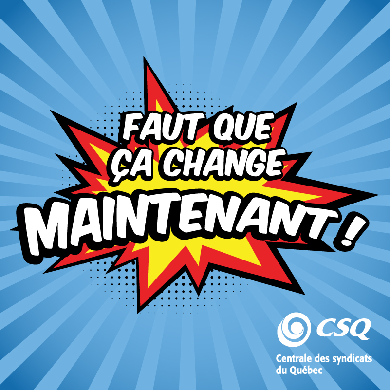 Nous sommes inspirés par le mouvement de grève entrepris avec force et par les nombreuses actions de mobilisation, notamment le mouvement de grève inauguré par les fédérations de l’enseignement supérieur, pour faire face à la mauvaise foi du gouvernement du Québec. C’est inacceptable qu’il refuse, encore aujourd’hui, d’améliorer les conditions de travail dans les services publics. Nous unissons nos voix pour encourager tous nos collègues de la CSQ dans ce mouvement essentiel et légitime avec la confiance que leur détermination, leur courage et leur solidarité mèneront à une belle réussite.
